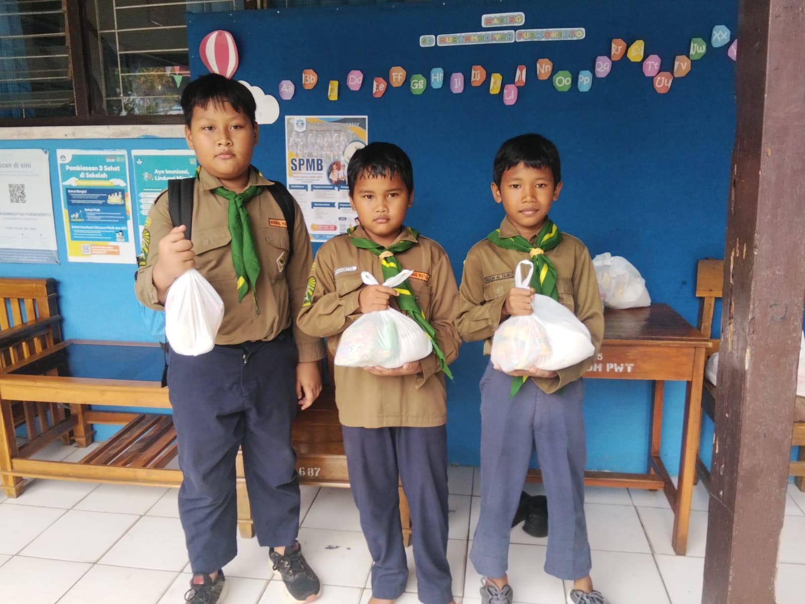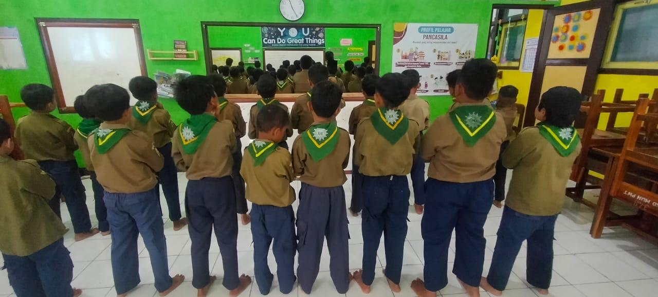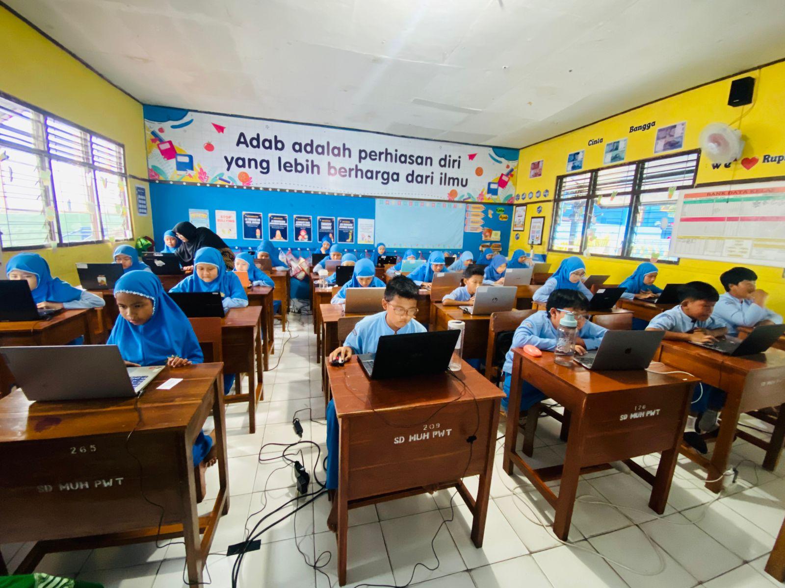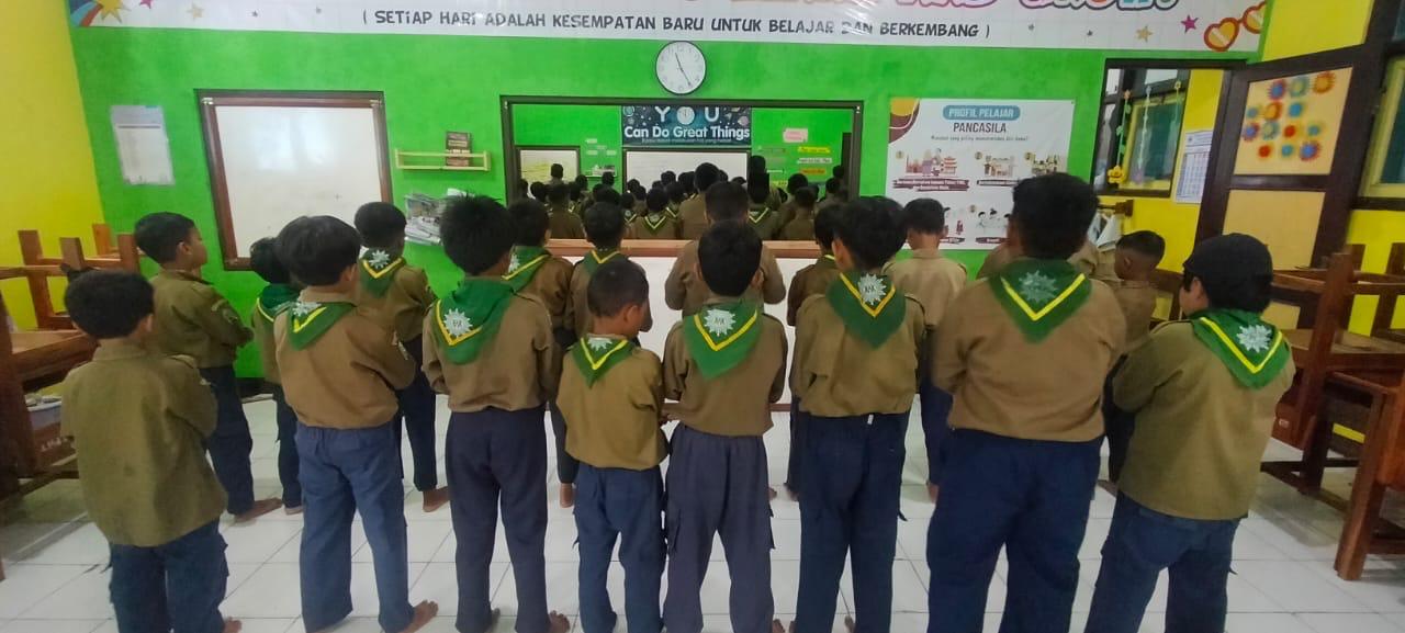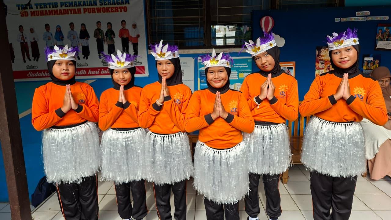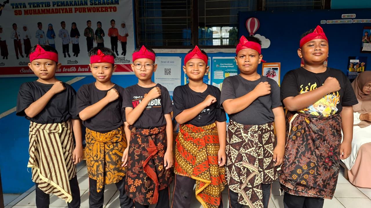 Kegiatan siswa-siwi SD Muhammadiyah Purwokerto dalam mengikuti pelatihan keteram...