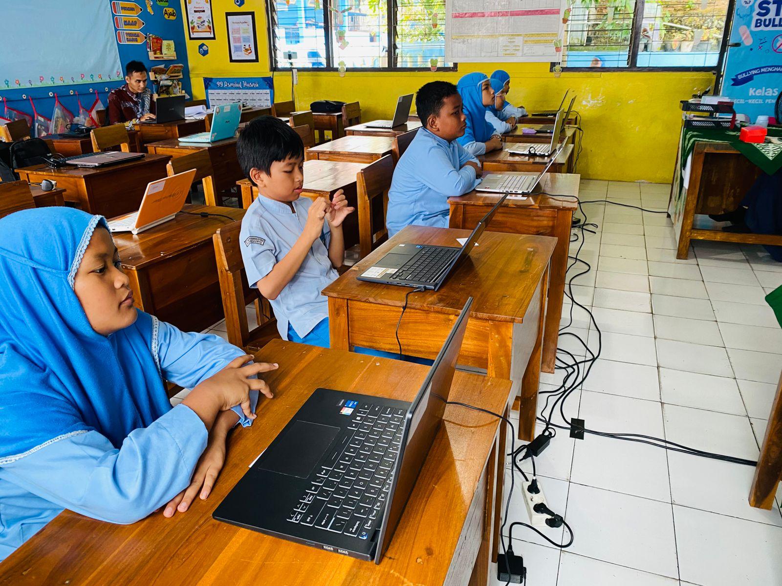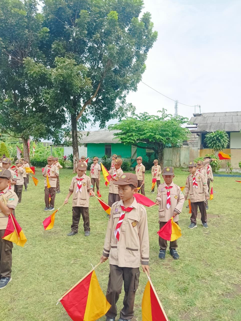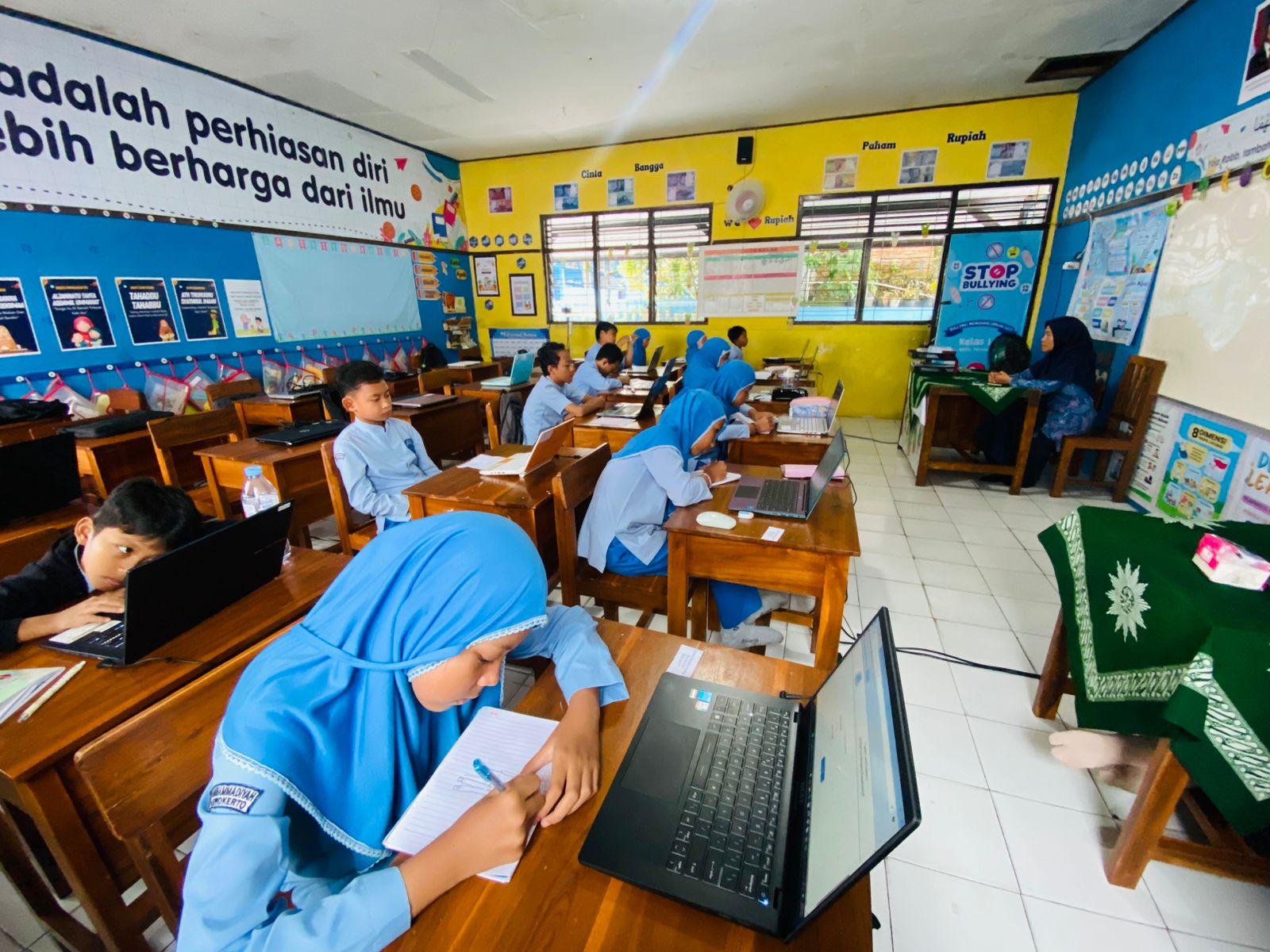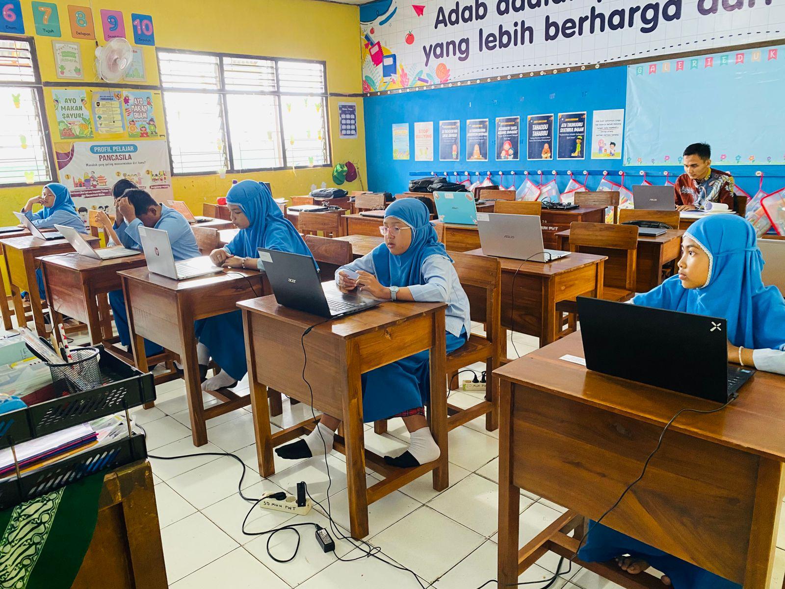 Kegiatan siswa-siwi SD Muhammadiyah Purwokerto dalam mengikuti pelatihan keteram...
